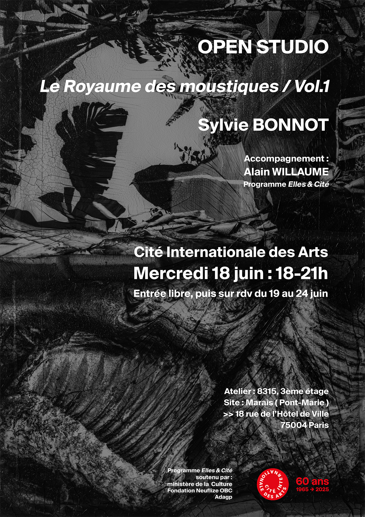 en amont du solo show PARIS PHOTO X HANGAR GALLERY et juste aprés la résidence Elles & Cité, à la Cité internationale des Arts, Paris, 2025 FR -> https://www.blind-magazine.com/fr/stories/sylvie-bonnot-au-coeur-du-royaume-des-moustiques/?wmc-currency=EUR