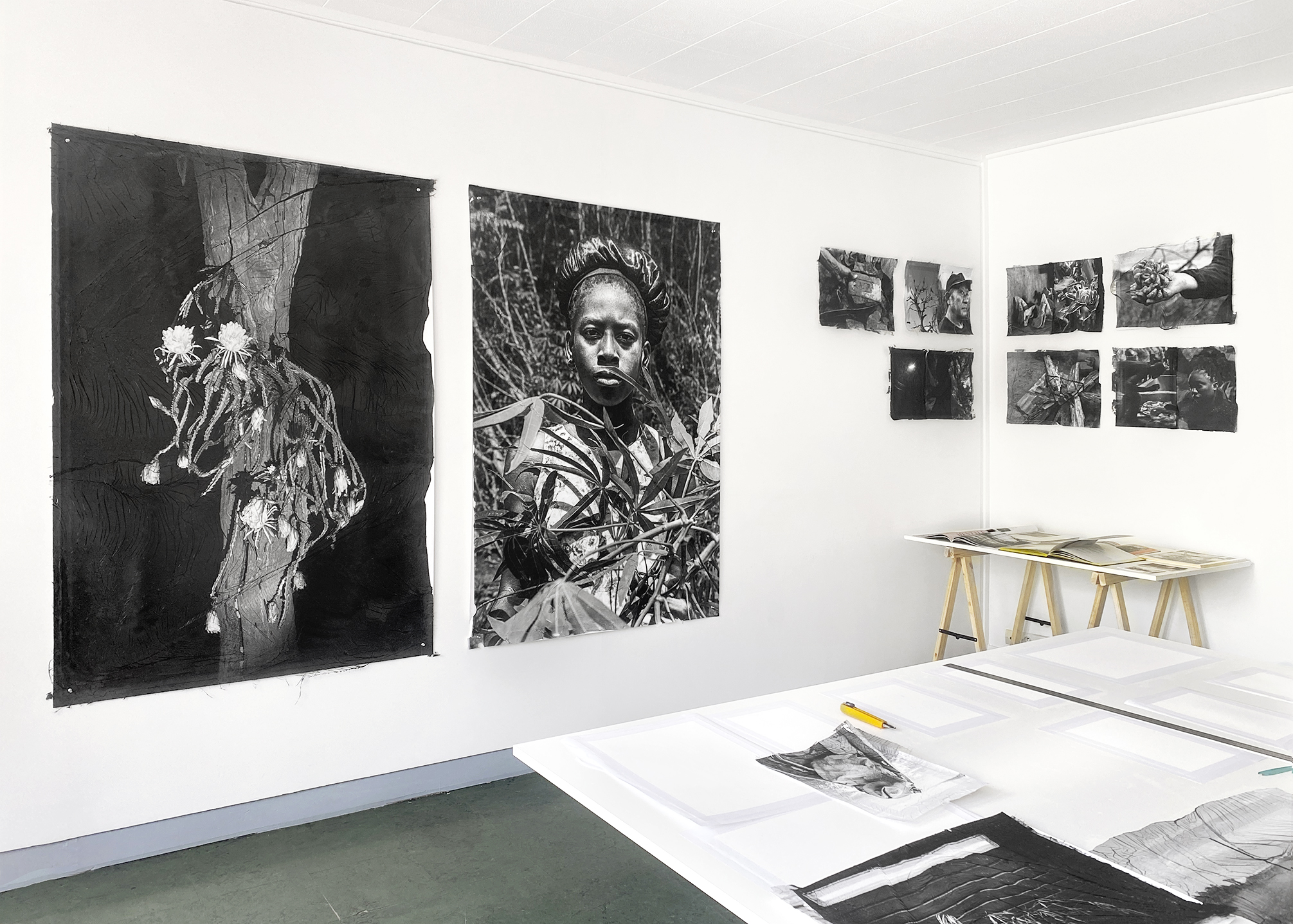 Photographies nb, gélatines argentiques transposées et cristallisées sur papier Arches, 166,5 x 115,5 cm. Oeuvres uniques.