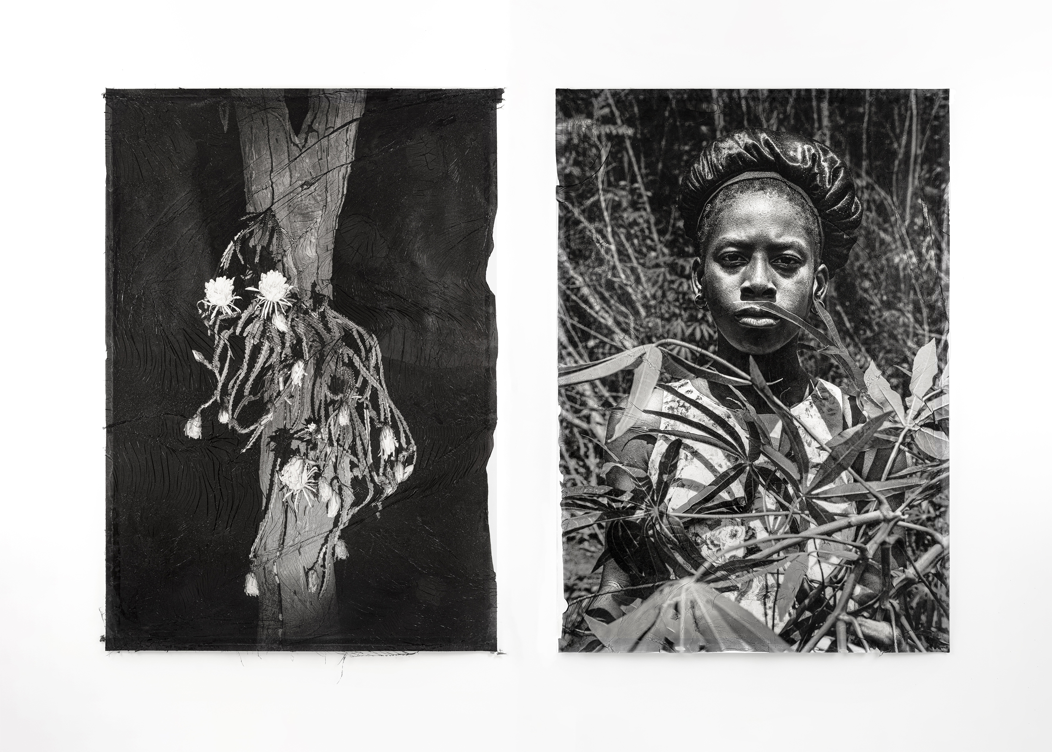 Diptyque, photographies NB, gélatines argentiques transposées et cristallisées sur papier Fabriano, 36 x 51 cm. Oeuvres uniques.